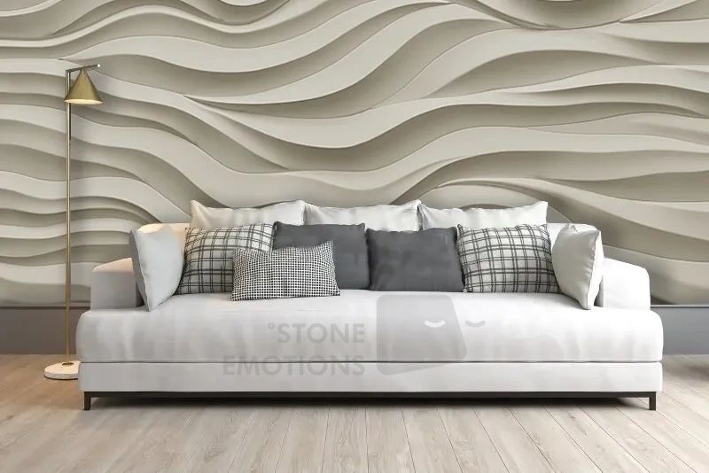A natural stone wall mural tile with wave patterns running parallel to the edge creating a serene appearance.